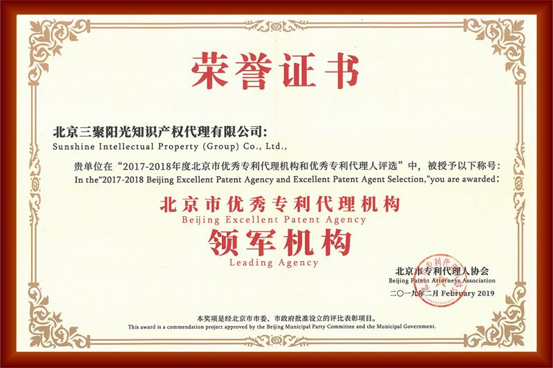 獲評(píng)“北京市優(yōu)秀專利代理機(jī)構(gòu)領(lǐng)軍機(jī)構(gòu)”