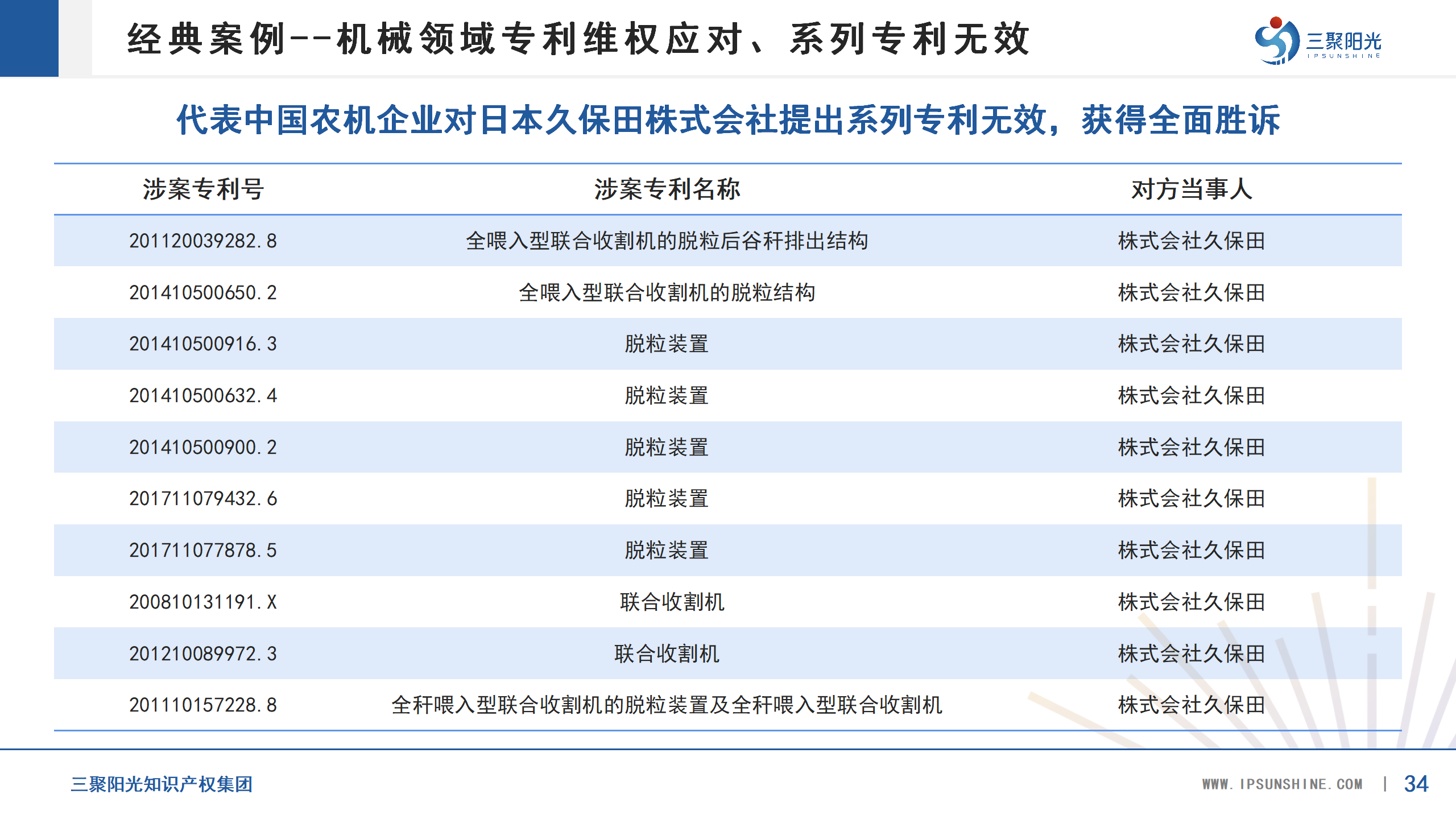 代表中國農(nóng)機(jī)企業(yè)對日本久保田株式會社提出系列專利無效,獲得全面勝訴