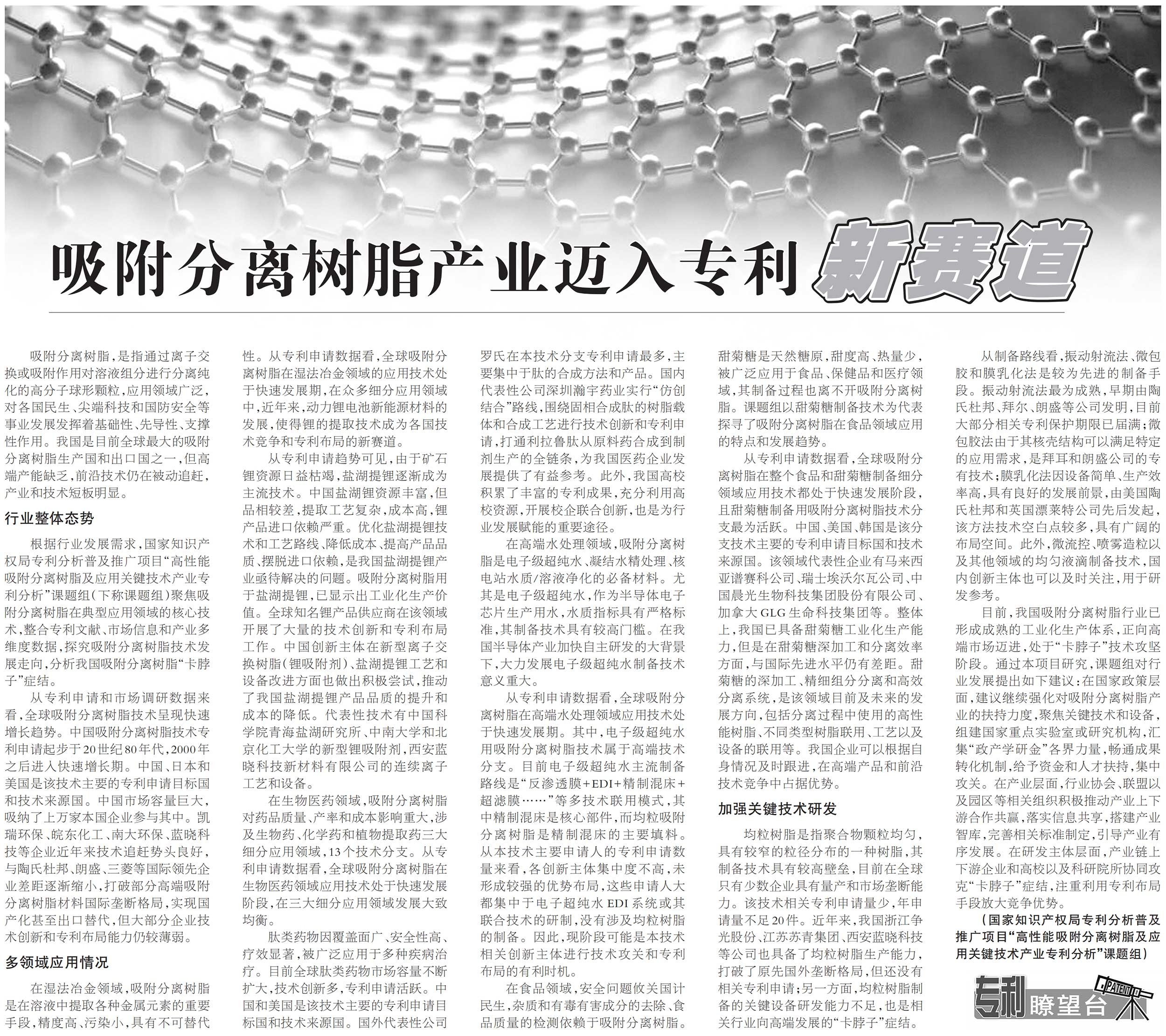 吸附分離樹(shù)脂產(chǎn)業(yè)邁入專(zhuān)利新賽道