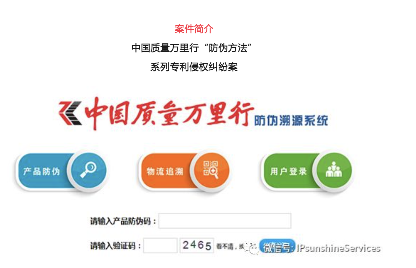2017年7月,北京市知識產(chǎn)權(quán)局審理認(rèn)定《中國質(zhì)量萬里行》雜志社在其網(wǎng)站“www.315wlx.com”提供防偽溯源技術(shù),好兒郎酒業(yè)公司在其產(chǎn)品包裝上使用防偽溯源方法構(gòu)成專利侵權(quán)行為,責(zé)令二者停止侵權(quán)。該案從啟動維權(quán)程序到認(rèn)定侵權(quán)成立僅用時(shí)3個(gè)月左右,專利侵權(quán)糾紛行政處理程序快捷高效的優(yōu)勢凸顯。