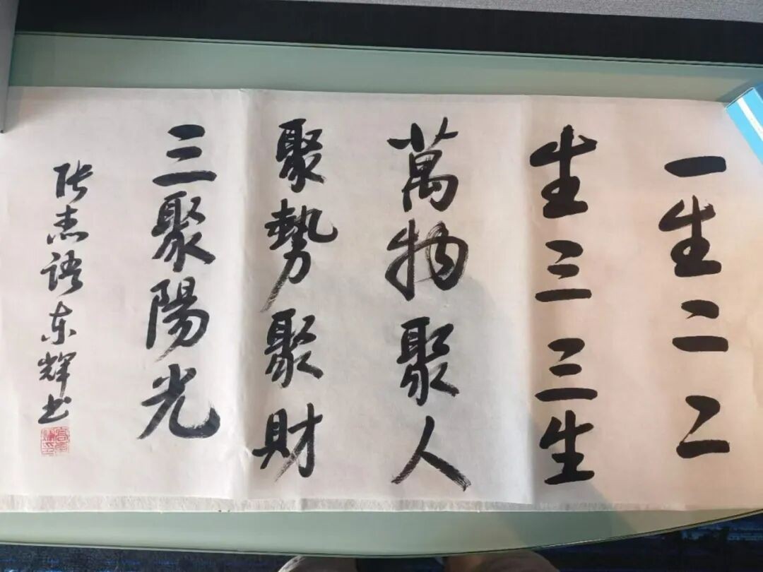 為進(jìn)一步增進(jìn)文化交流、傳遞友好情誼,三聚陽(yáng)光副總裁高東輝現(xiàn)場(chǎng)揮毫潑墨,以中國(guó)傳統(tǒng)書(shū)法書(shū)寫(xiě)“天朗氣清”“知足常樂(lè)”等寓意美好的詞句,贈(zèng)予來(lái)訪嘉賓,贏得了國(guó)際同行的由衷贊嘆。這也成為本次展會(huì)中一道獨(dú)具韻味的文化風(fēng)景線,生動(dòng)詮釋了知識(shí)產(chǎn)權(quán)領(lǐng)域跨越國(guó)界的理解、尊重與合作精神。