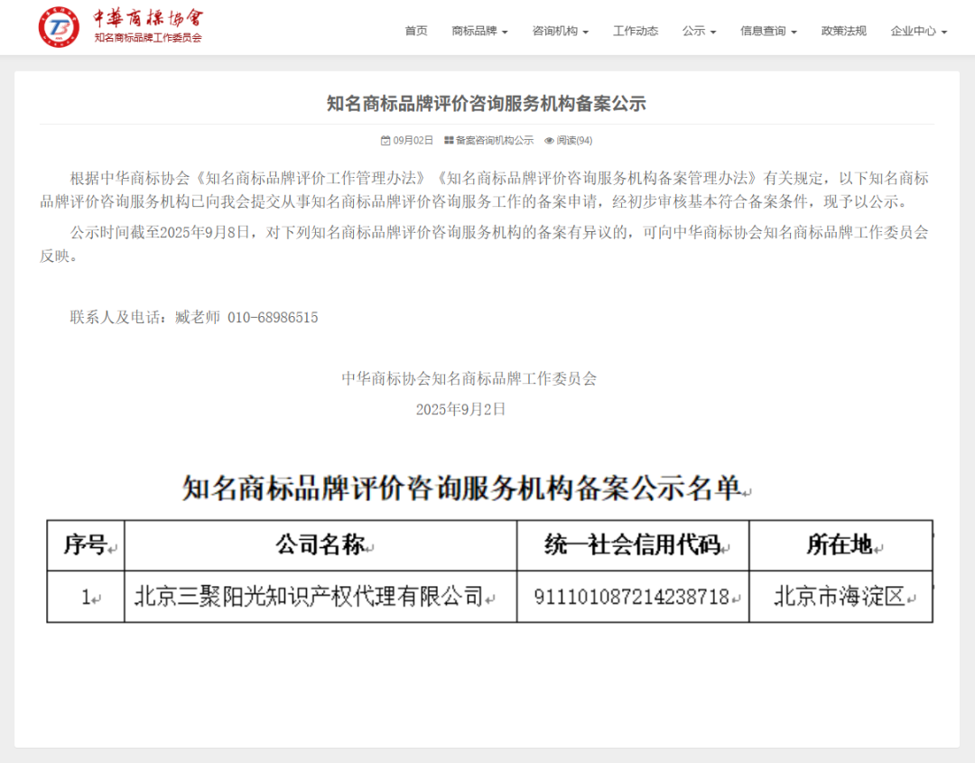 近日,三聚陽光通過中華商標(biāo)協(xié)會(huì)知名商標(biāo)品牌工作委員會(huì)審核,正式成為“知名商標(biāo)品牌評價(jià)”咨詢服務(wù)機(jī)構(gòu)備案單位。這標(biāo)志著三聚陽光將可以為廣大企業(yè)提供官方認(rèn)可的知名商標(biāo)品牌申報(bào)咨詢、輔導(dǎo)及全流程代理服務(wù),助力企業(yè)提升品牌價(jià)值,構(gòu)筑堅(jiān)實(shí)的知識(shí)產(chǎn)權(quán)壁壘。