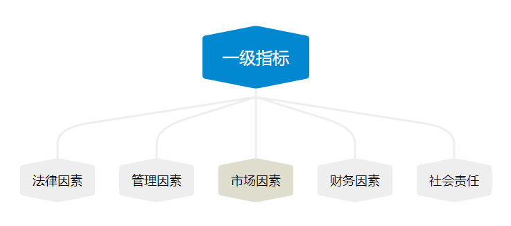 ·一級指標(biāo):評價(jià)體系涵蓋法律因素、管理因素、市場因素、財(cái)務(wù)因素、社會(huì)責(zé)任五個(gè)一級指標(biāo)。