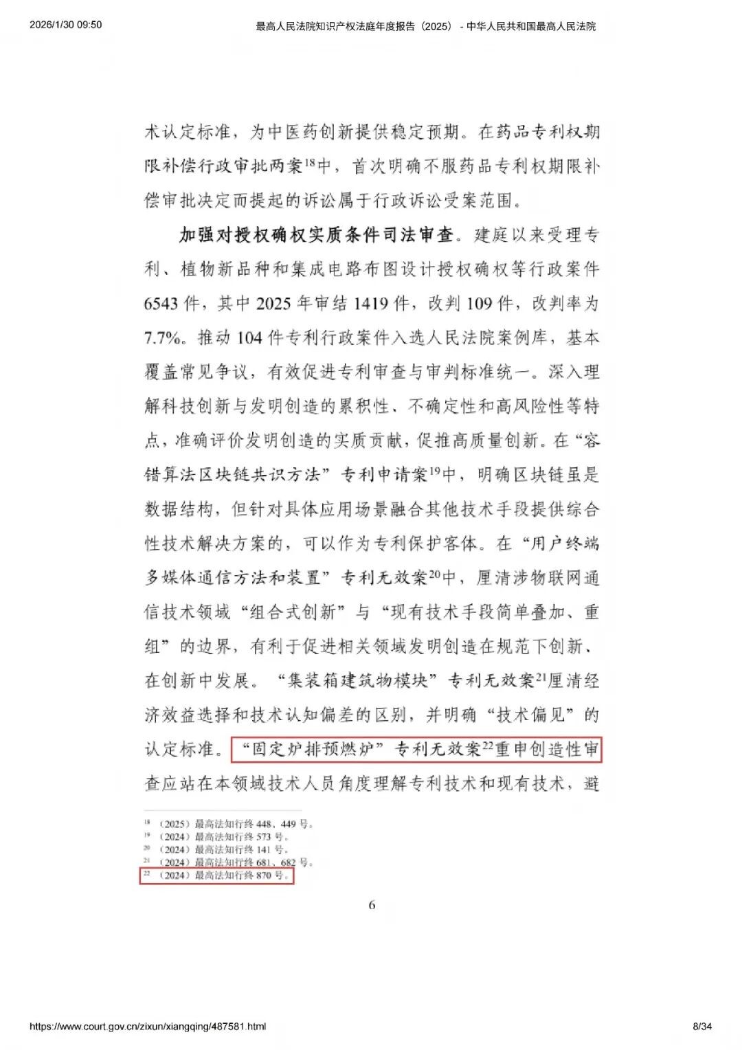 在《報告》第一部分“緊扣國家戰(zhàn)略,護(hù)航科技創(chuàng)新”中,三聚陽光代理的涉“固定爐排預(yù)燃爐”專利權(quán)無效行政糾紛案【(2024)最高法知行終870號】被引用。