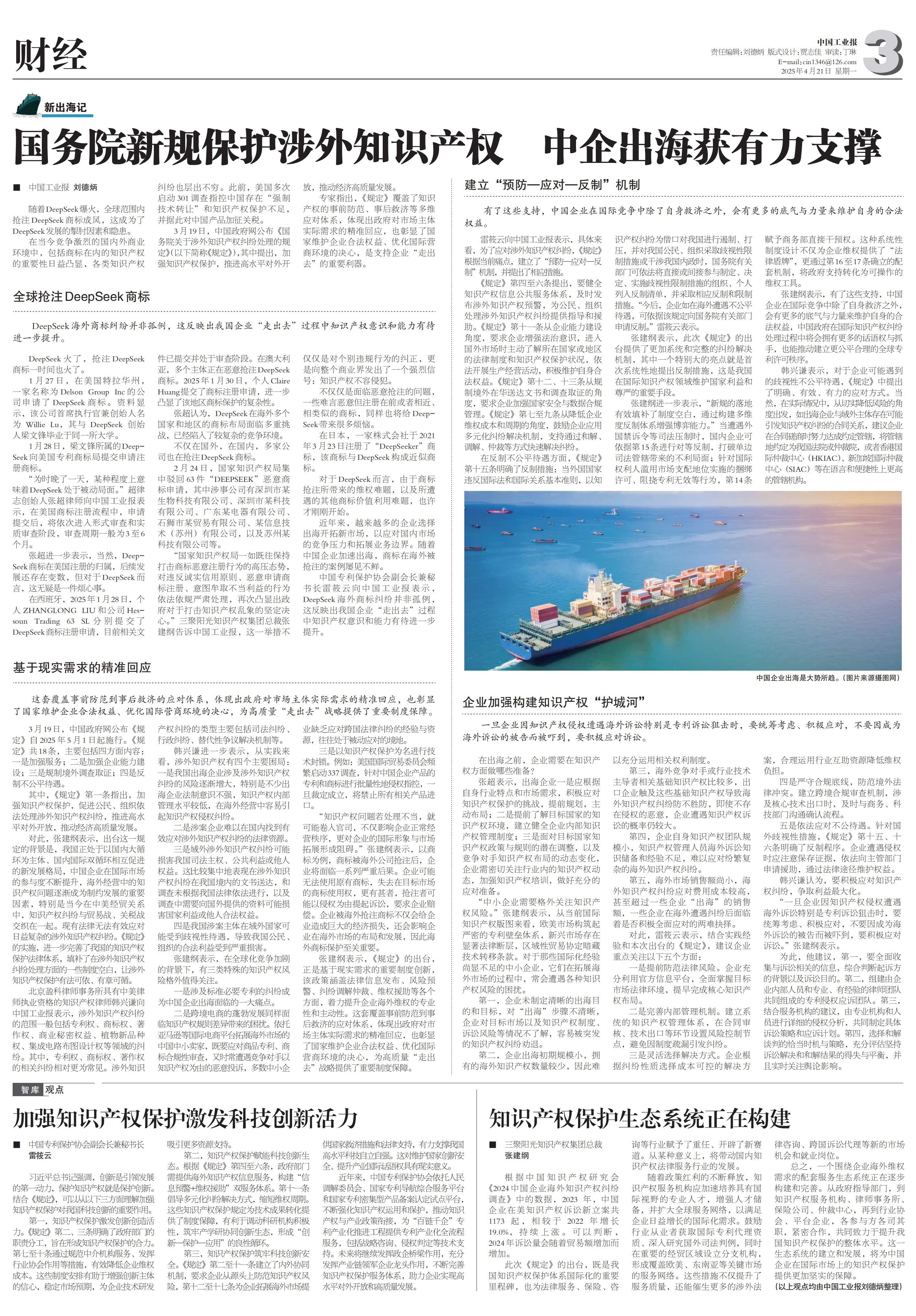 3月19日,中國政府網(wǎng)公布《國務院關(guān)于涉外知識產(chǎn)權(quán)糾紛處理的規(guī)定》(以下簡稱《規(guī)定》),其中提出,加強知識產(chǎn)權(quán)保護,推進高水平對外開放,推動經(jīng)濟高質(zhì)量發(fā)展。